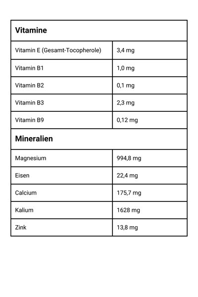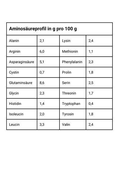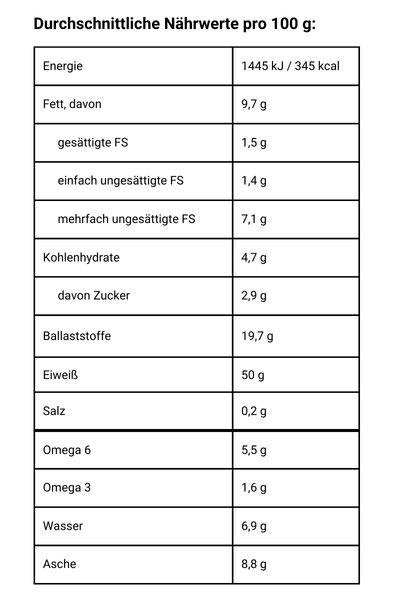 - mit einem Eiweissgehalt von 50 % und wertvollen Ballaststoffen
